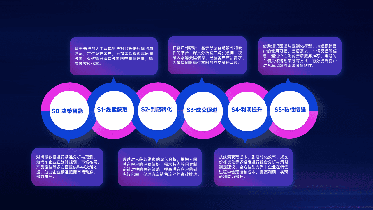 通过拓宽潜在客户来源、、、优化线索分配并提高到店转化率,,以增强销售效率。。。。同时,,,,利用线索数据不断优化分析模型,,,有效提升转化率,,,扩大营销影响力。。